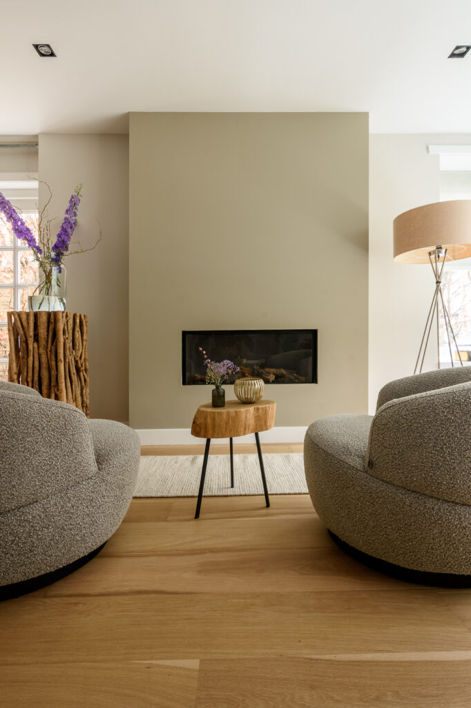 Dan volgt de creatieve fase waarin ik verschillende elementen samenbreng: kleur, licht, meubels, texturen. Het doel is om een harmonieus geheel te creëren dat jouw unieke stijl uitstraalt. Tijdens deze fase krijg je schetsen, meubel- en kleurvoorstellen te zien. Dit is het moment om feedback te geven: wat spreekt je aan en wat niet? Deze samenwerking vind ik heel belangrijk om ervoor te zorgen dat het eindresultaat volledig aansluit bij jouw wensen. Je bent daardoor echt betrokken bent bij de keuzes die we maken.